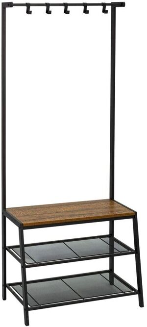 Porte Manteau Vintage Vestiaire Meuble D Entree Avec Etagere A Chaussures A 3 Niveaux Hsr40b Armature Metallique Rigide Aspect Bois72 X 33 7 X 183 Cm L X L X H Vente De Vasagle Conforama